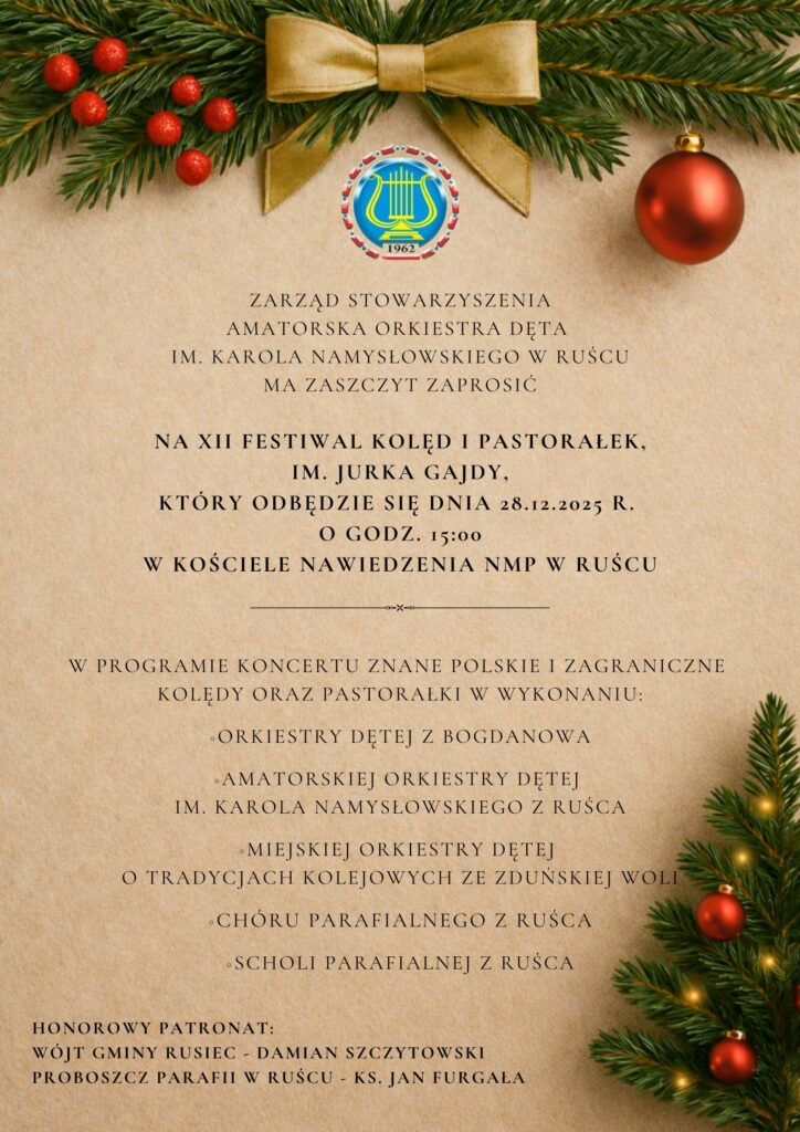 W ten wyjątkowy, wigilijny czas serdecznie zapraszamy na XII Festiwal Kolęd i Pastorałek im. Jurka Gajdy 🎄🎺